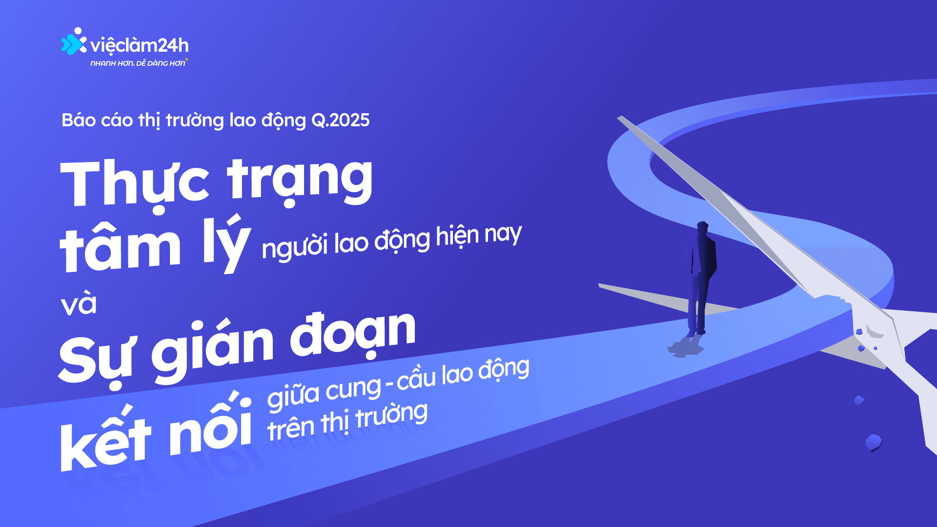 Thành phố Hồ Chí Minh, ngày 29 tháng 7 năm 2025 - Vieclam24h chính thức công bố báo cáo thị trường lao động Q2.2025 mang tên "Thực trạng Tâm lý Người lao động hiện nay và Sự gián đoạn kết nối giữa Cung - cầu lao động trên thị trường" được thực hiện từ nghiên cứu trên gần 3.000 người tham gia (gần 2.000 Người lao động và gần 1.000 Doanh nghiệp) trong giai đoạn tháng 5-6 năm 2025.